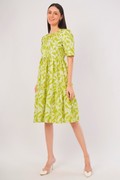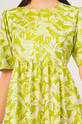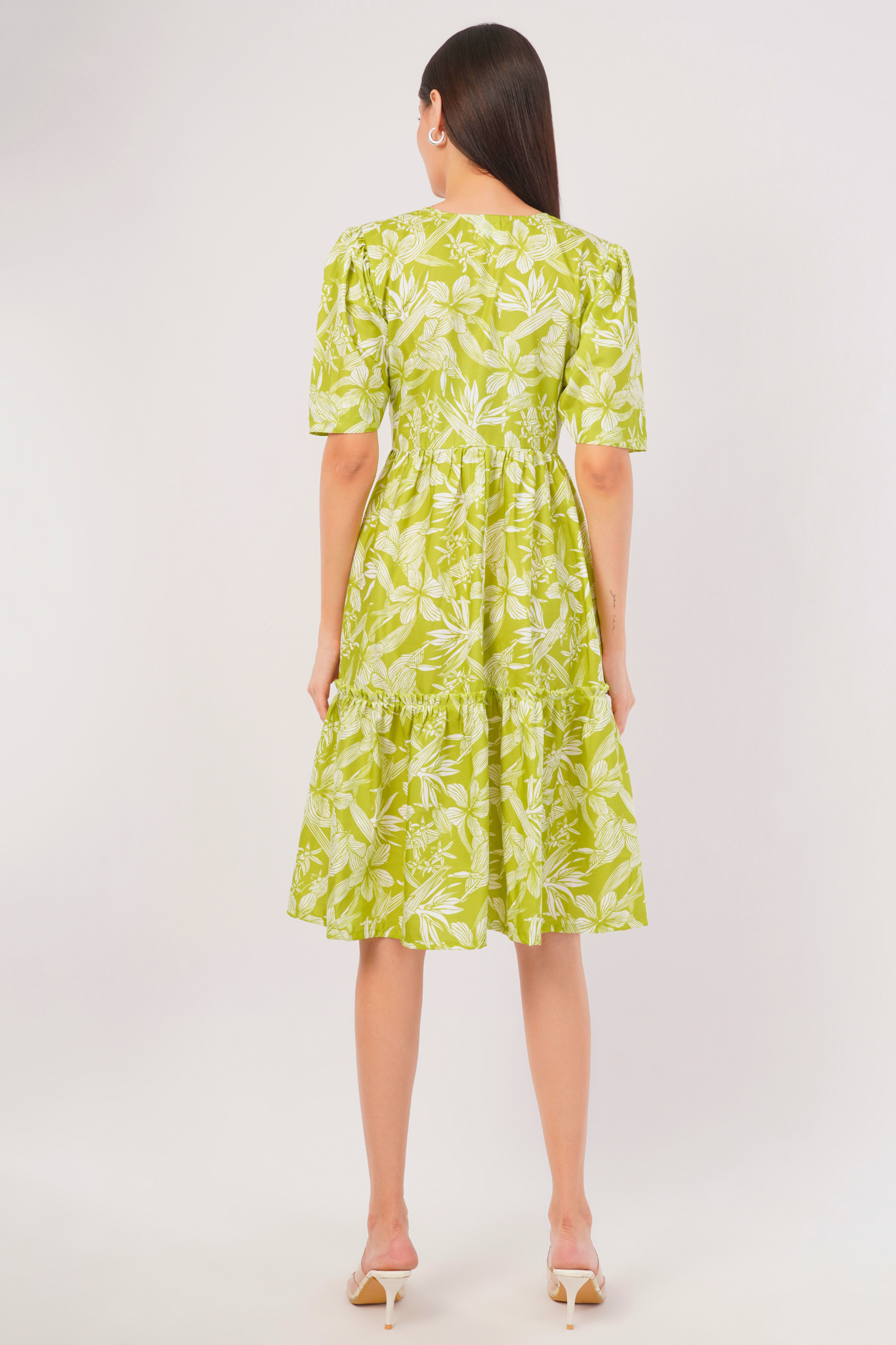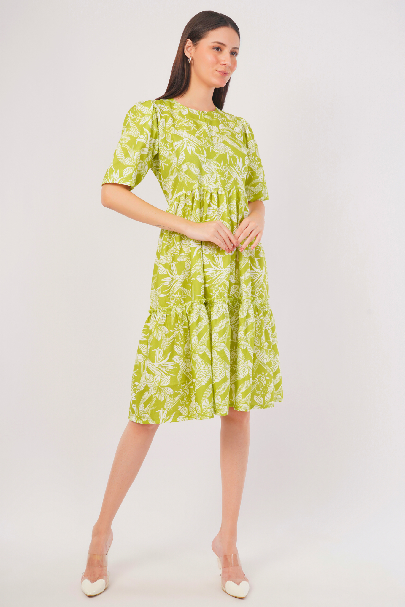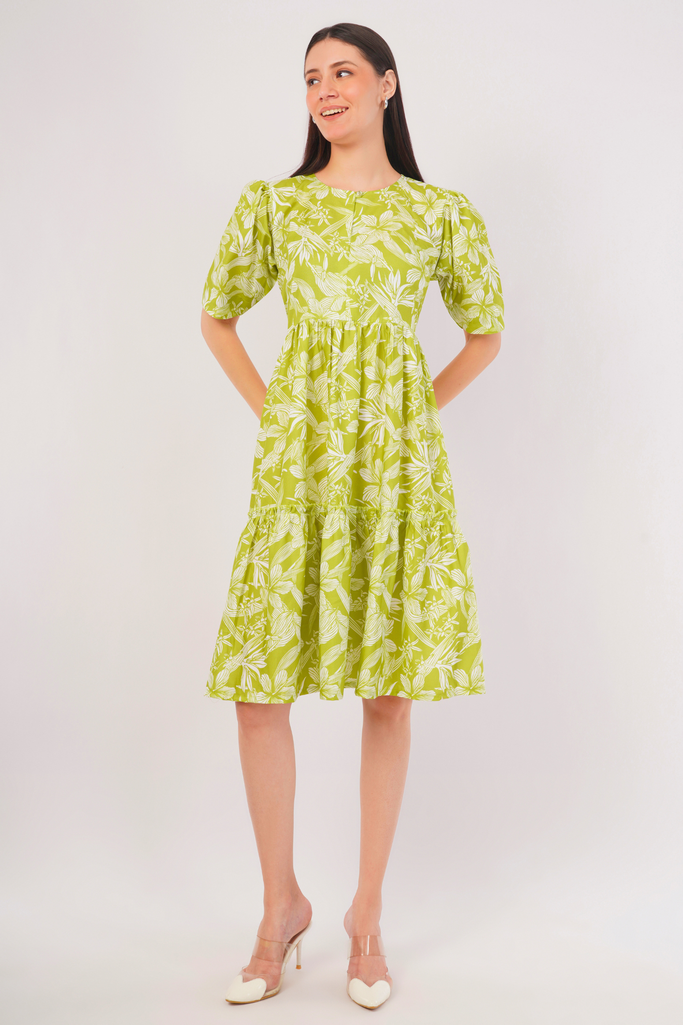 Strawberry Xpress Apparels Tropical Print Puff Sleeve A-Line Maxi Dress – Green