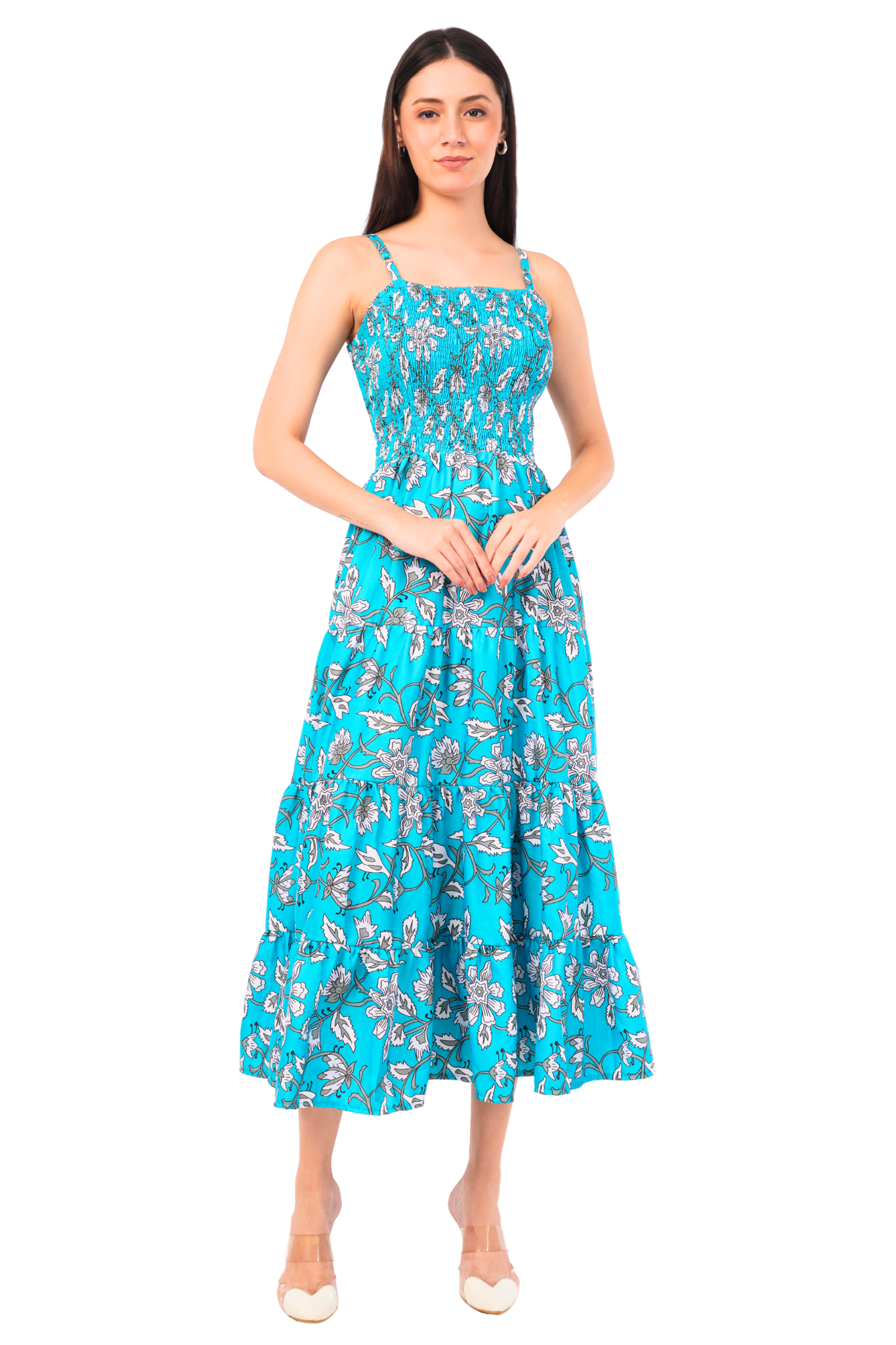 Smocked Bodice for Perfect Fit: The stretchable smocked design hugs your curves comfortably while allowing flexibility and ease of movement.