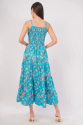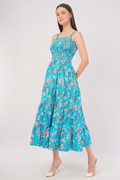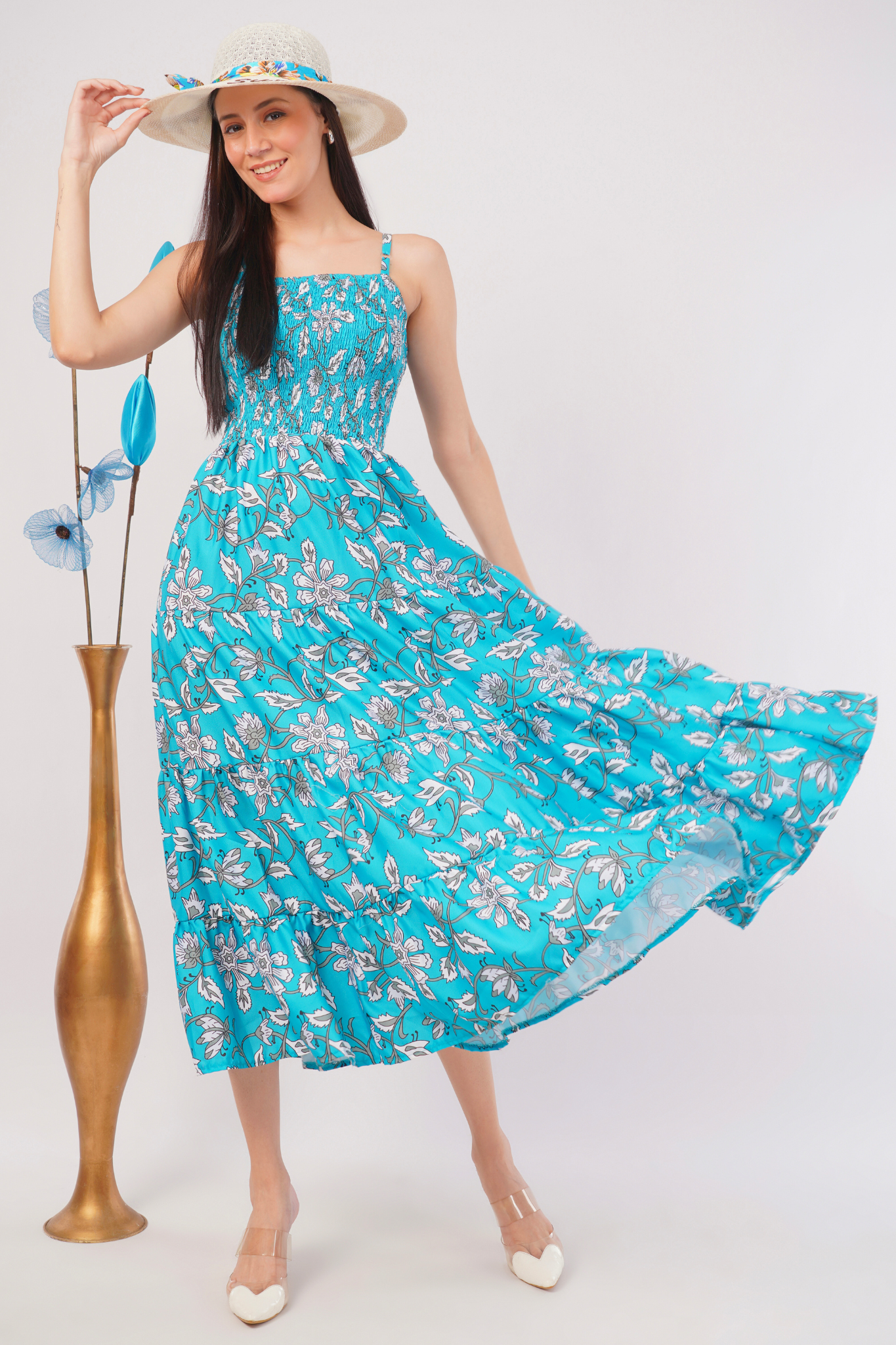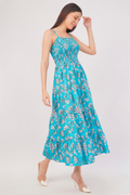 Strawberry Xpress Smocked Floral A-Line Maxi Dress – Blue