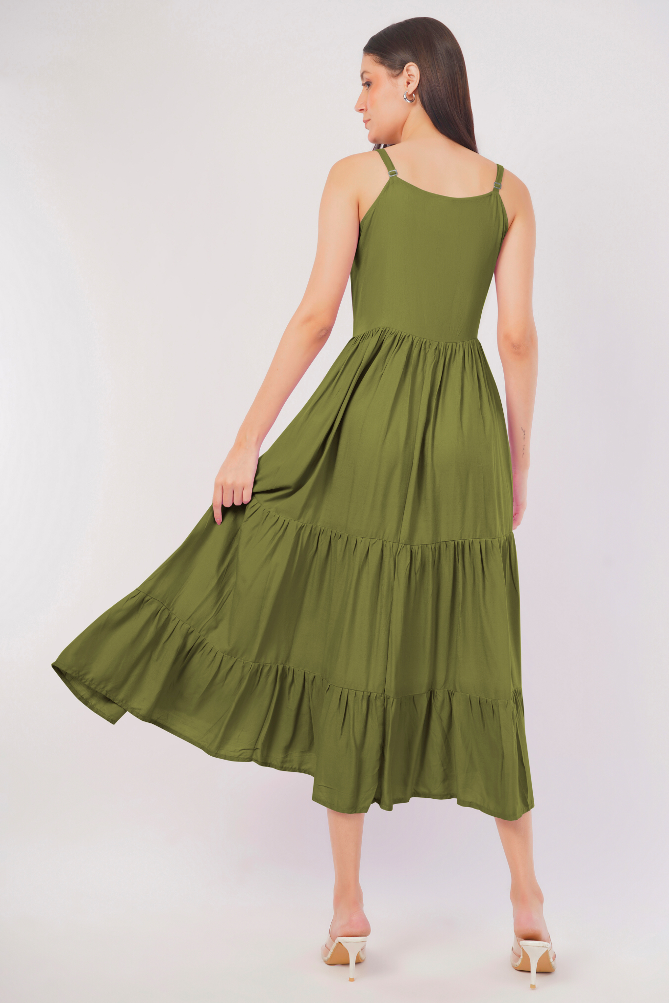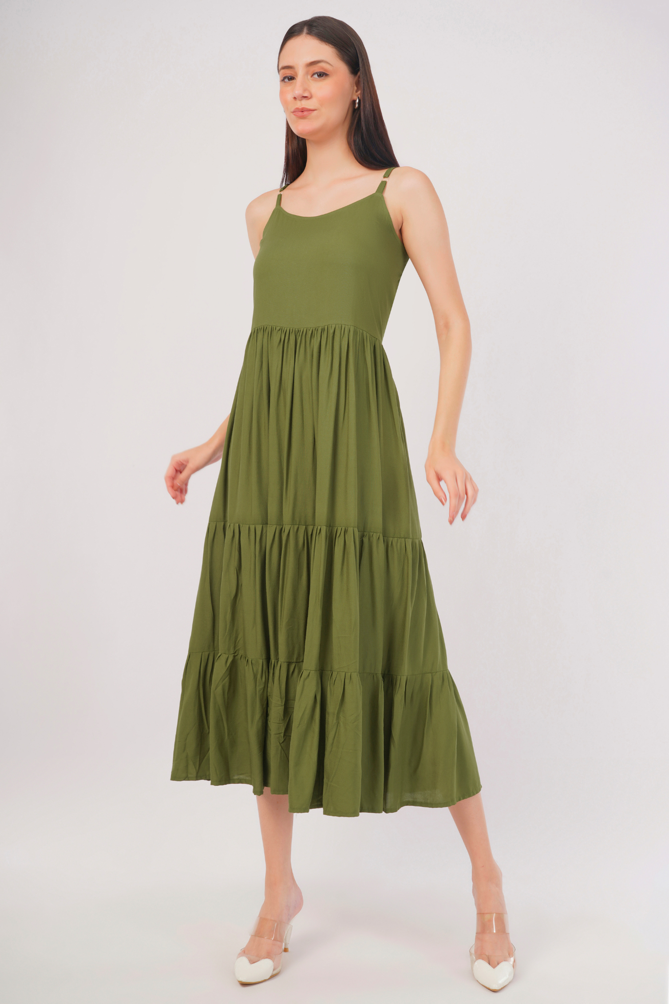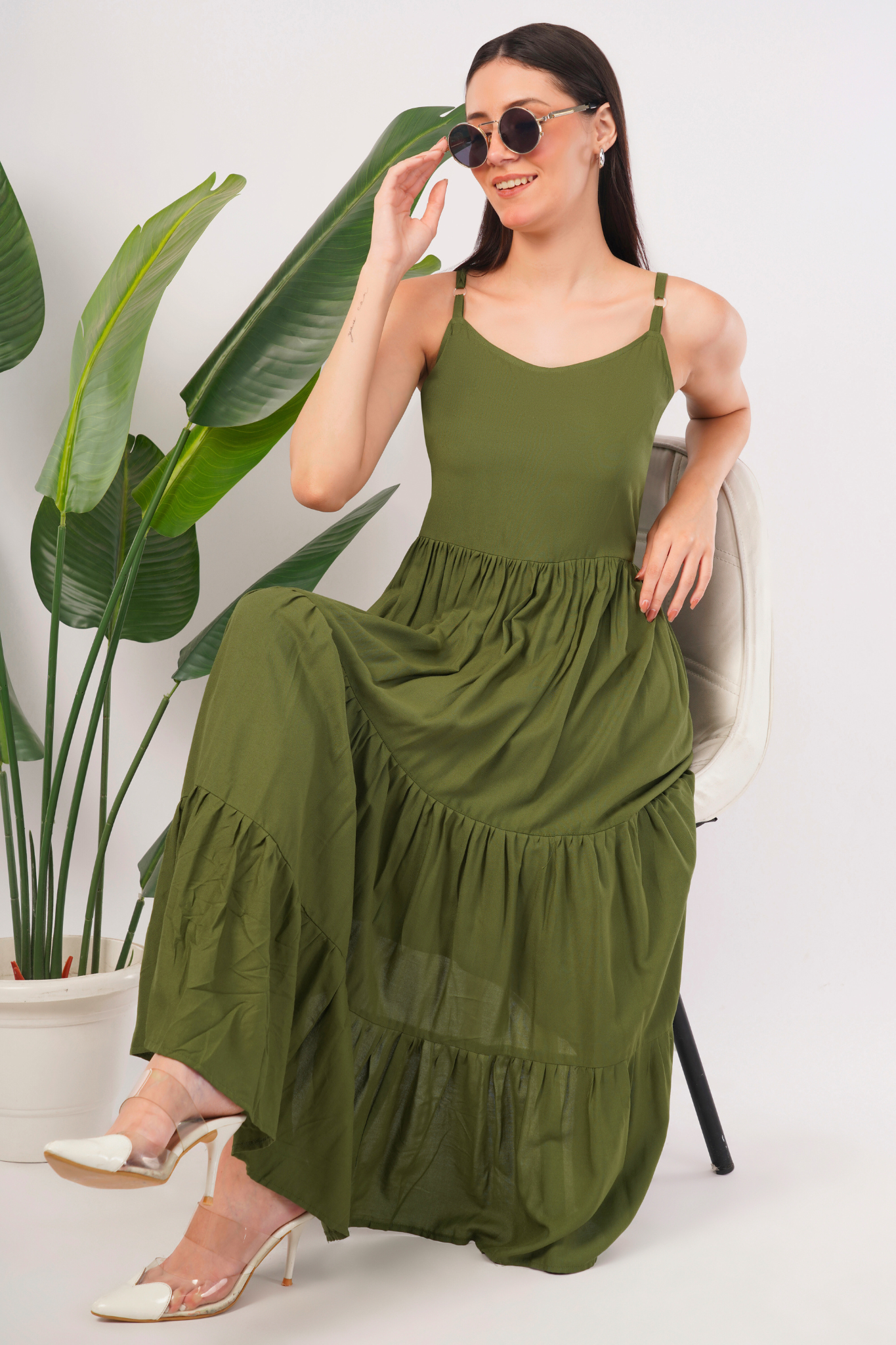 Strawberry Xpress Solid Tiered A-Line Maxi Dress – Green