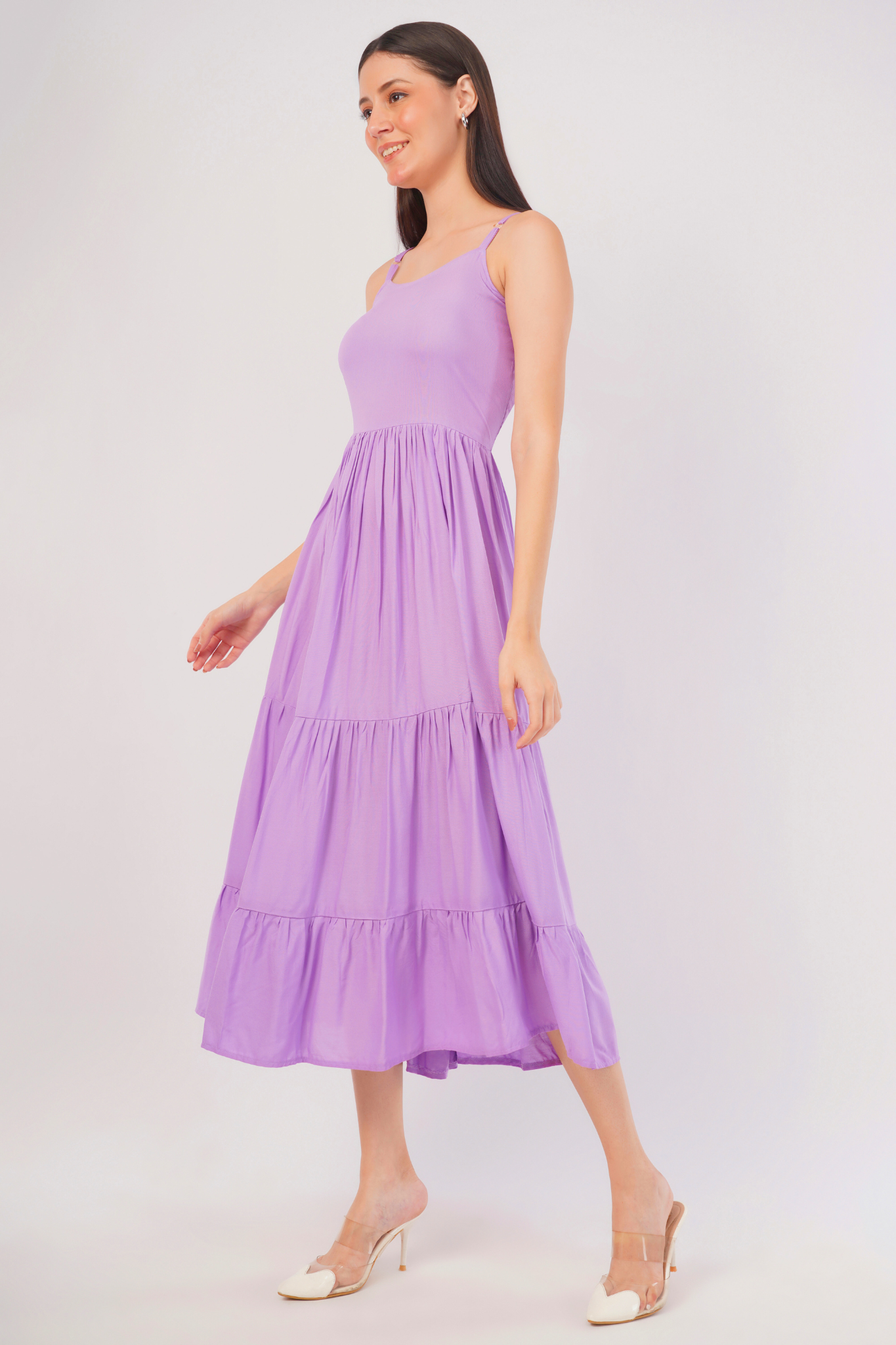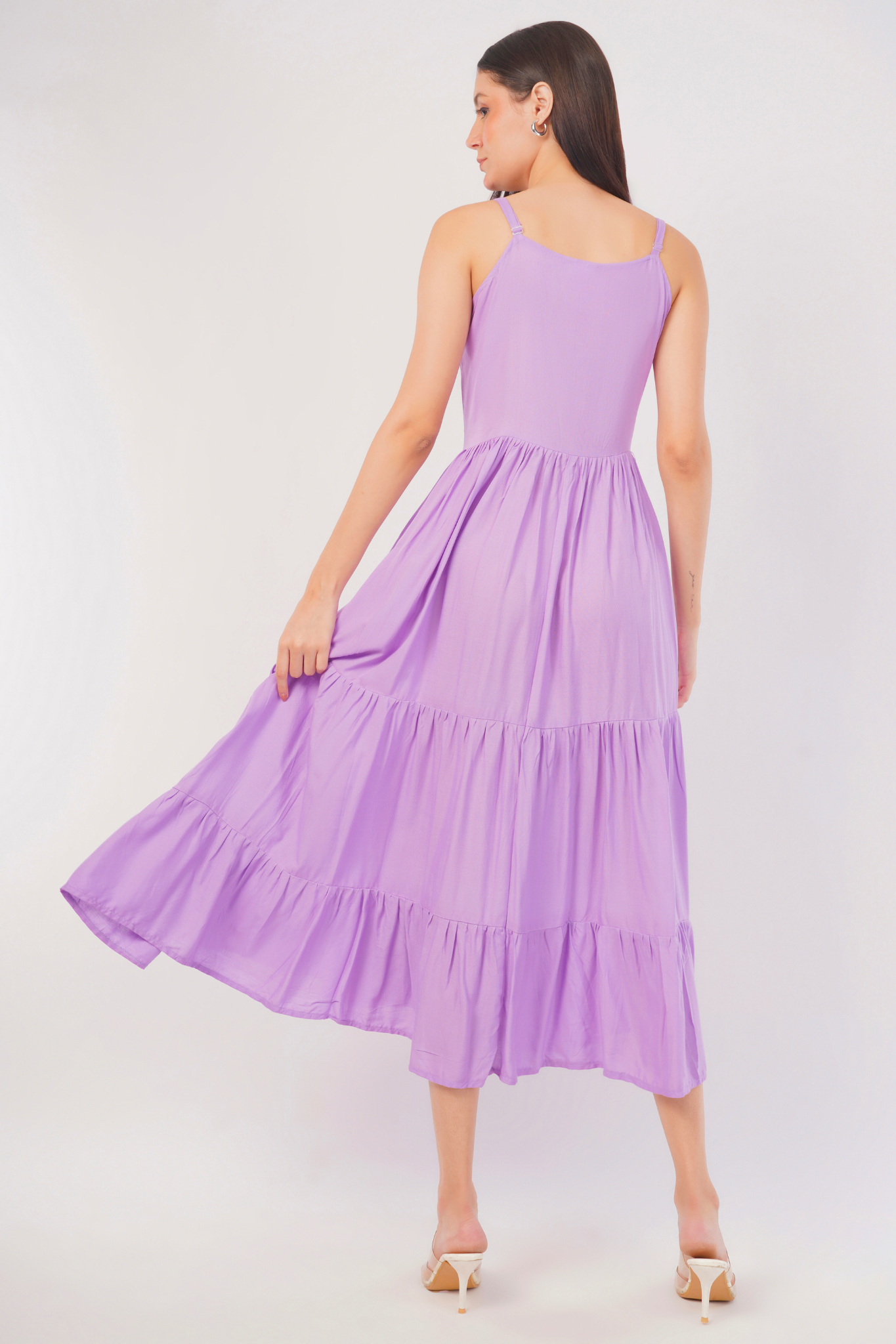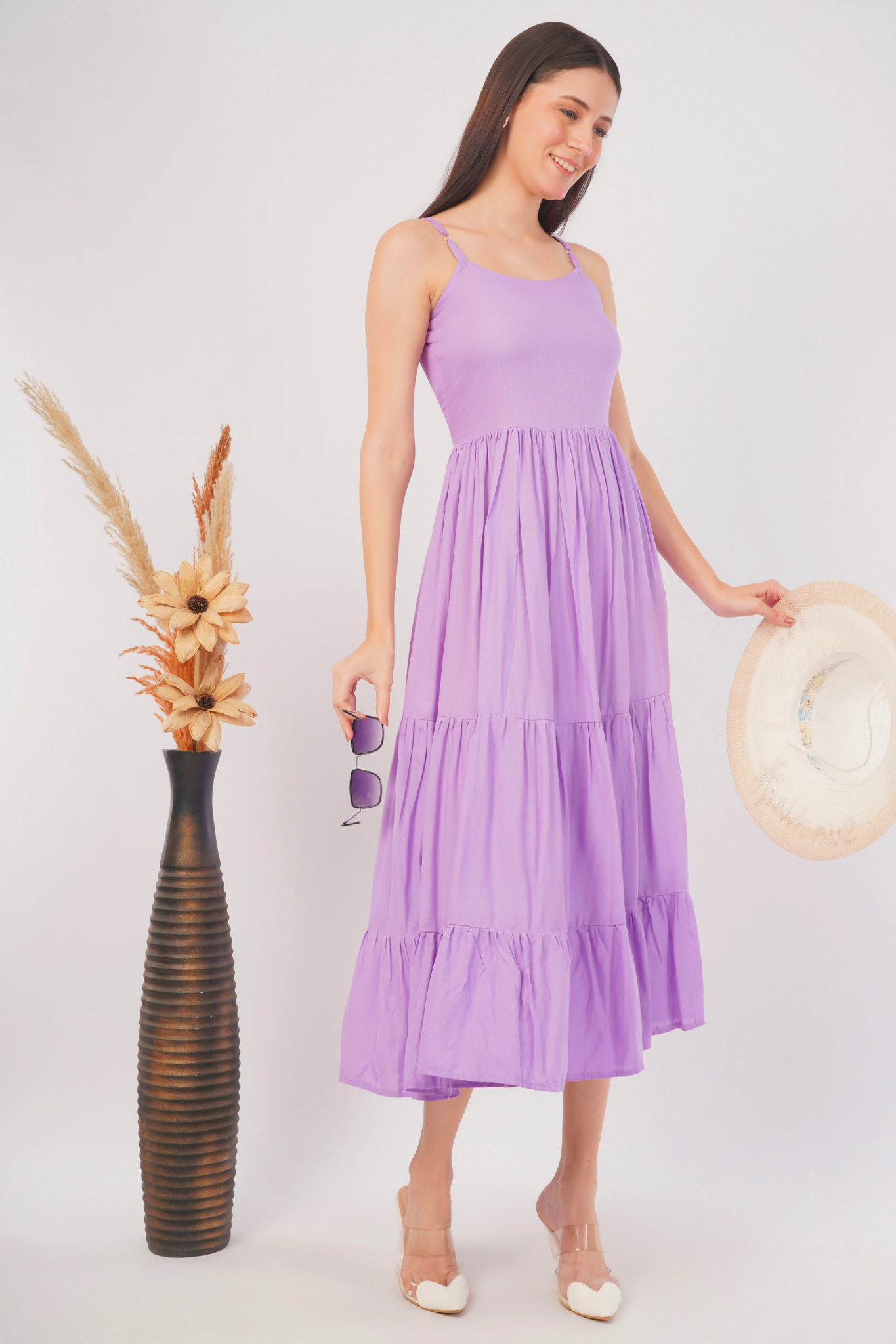 Strawberry Xpress Solid Tiered A-Line Maxi Dress – Lavender