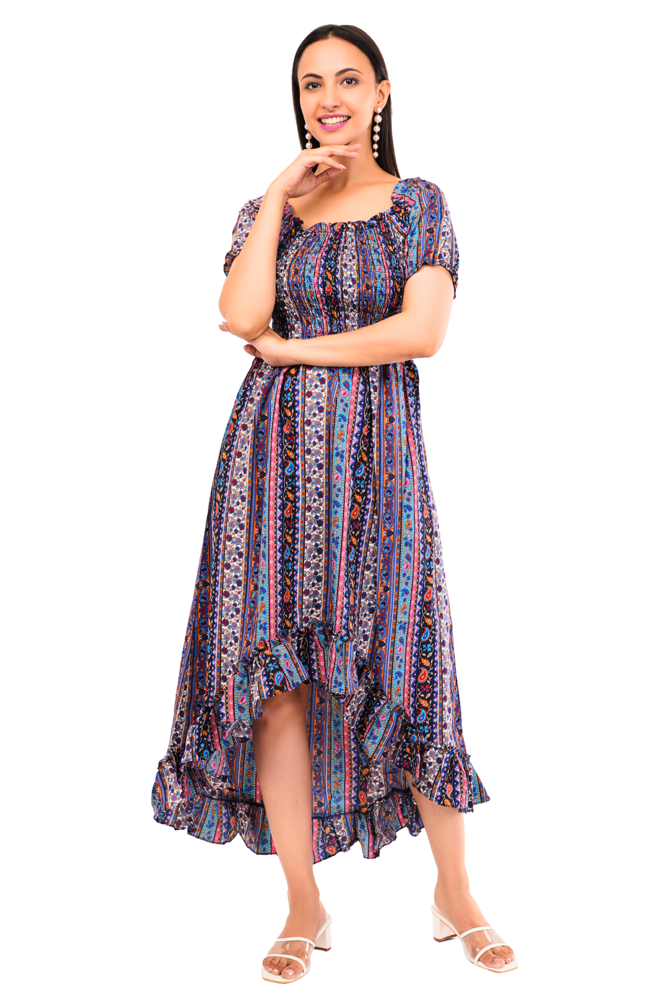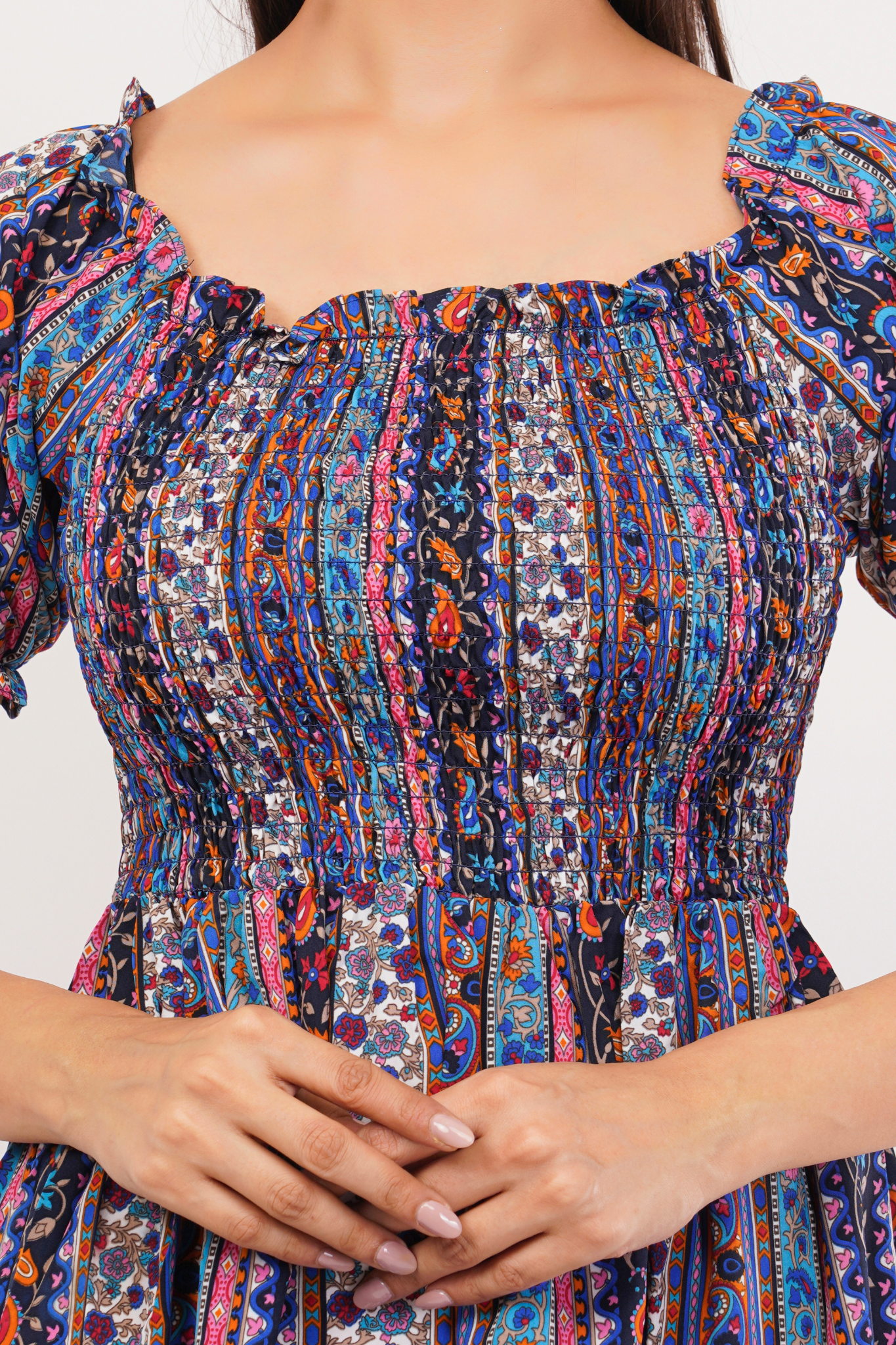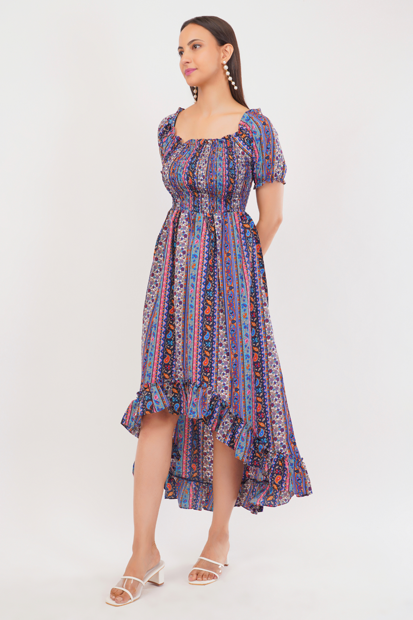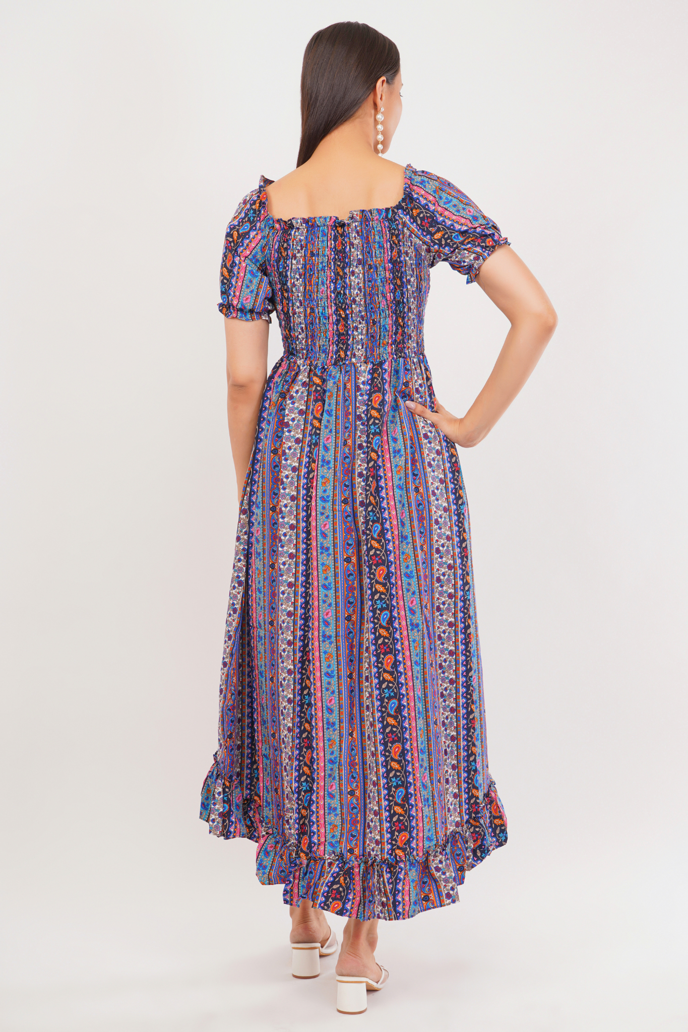 - Smocked Bodice with Ruffled Hem: The smocked bodice offers a snug yet flexible fit, while the ruffled hem adds a playful flair to your ensemble.