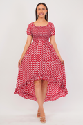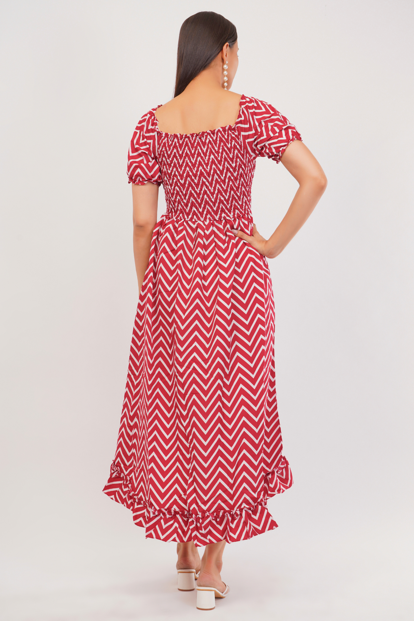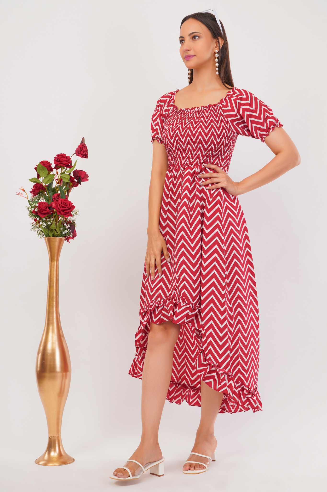 Strawberry Xpress Women's Crepe A-Line Maxi Dress – Ruffled Red & White