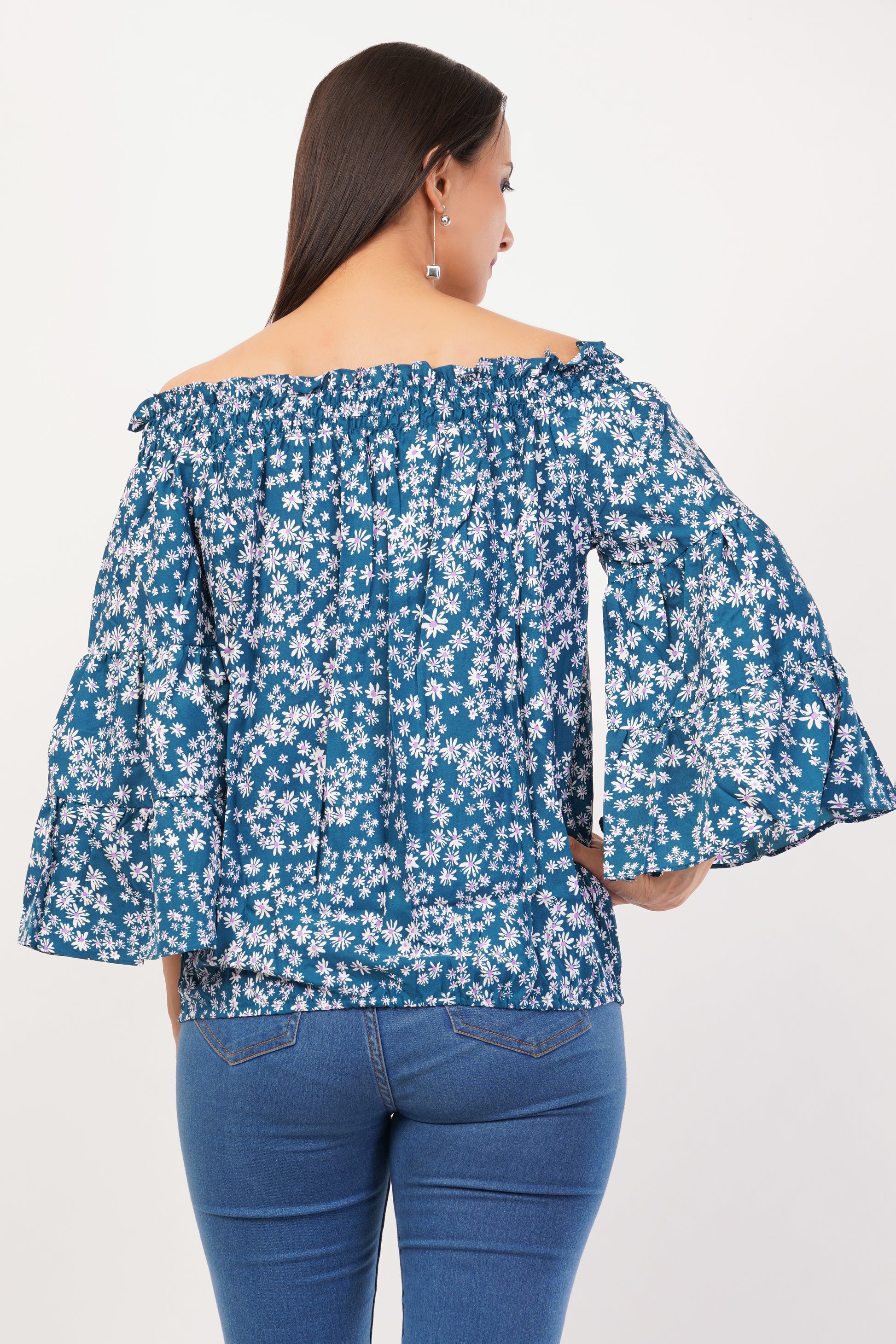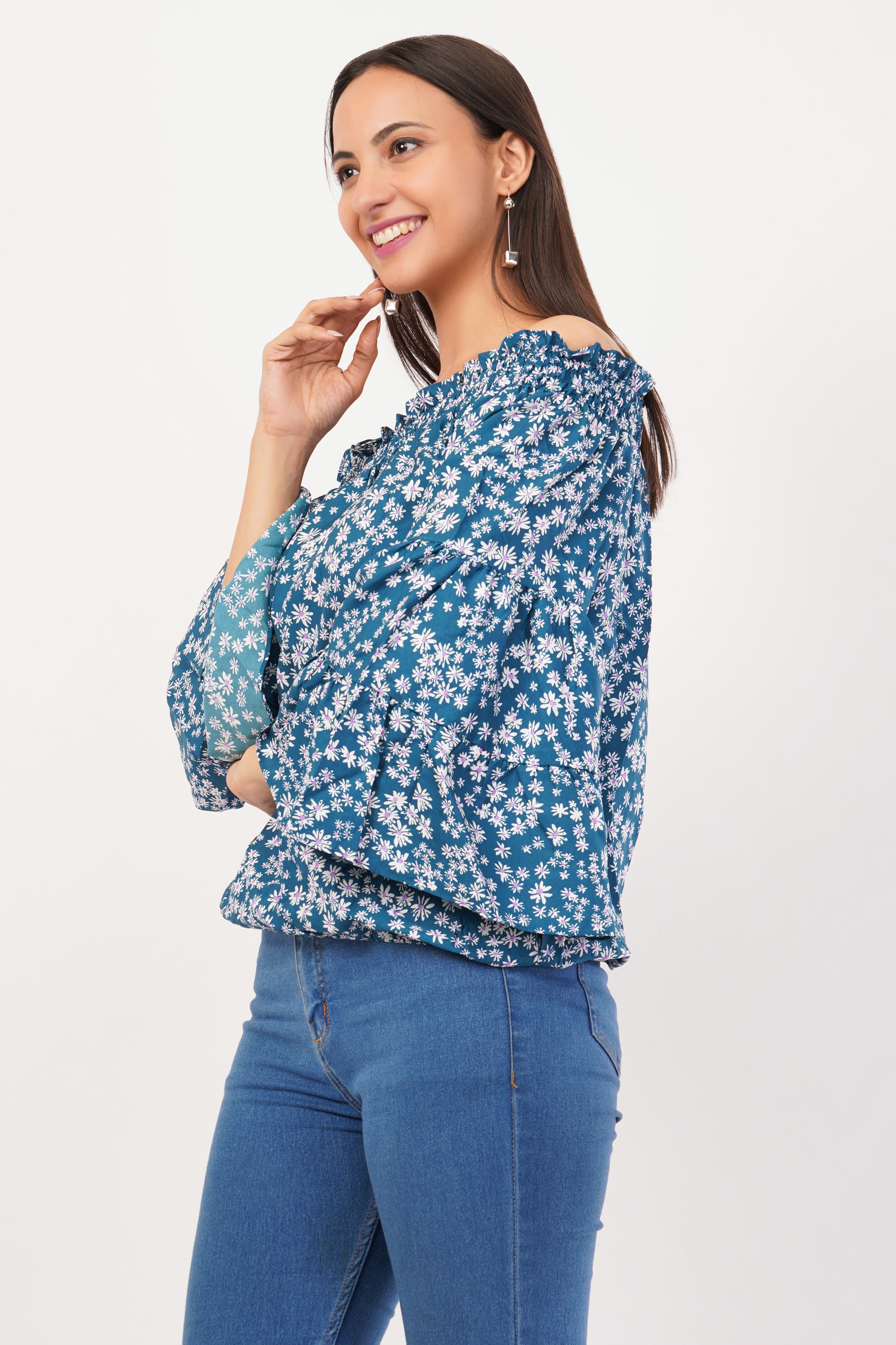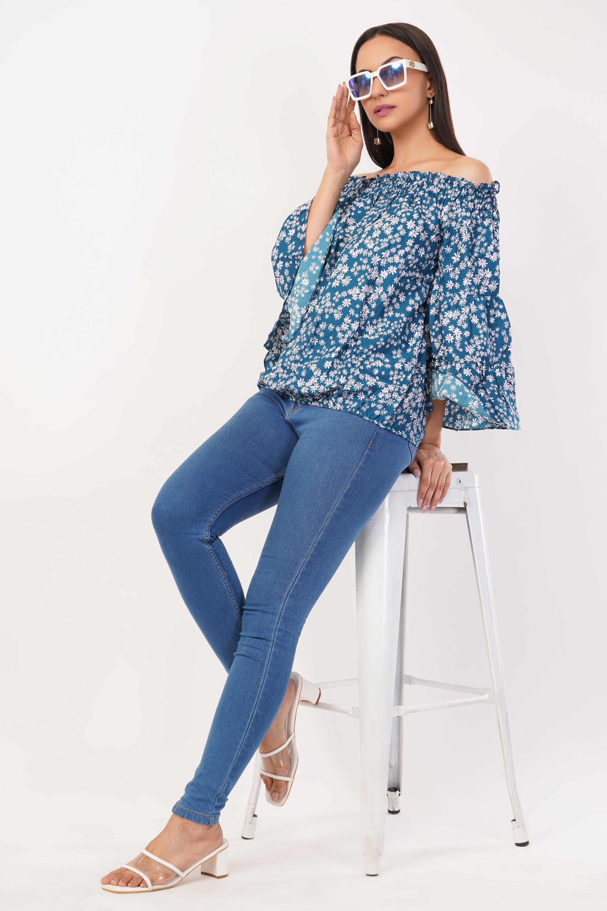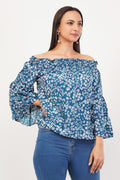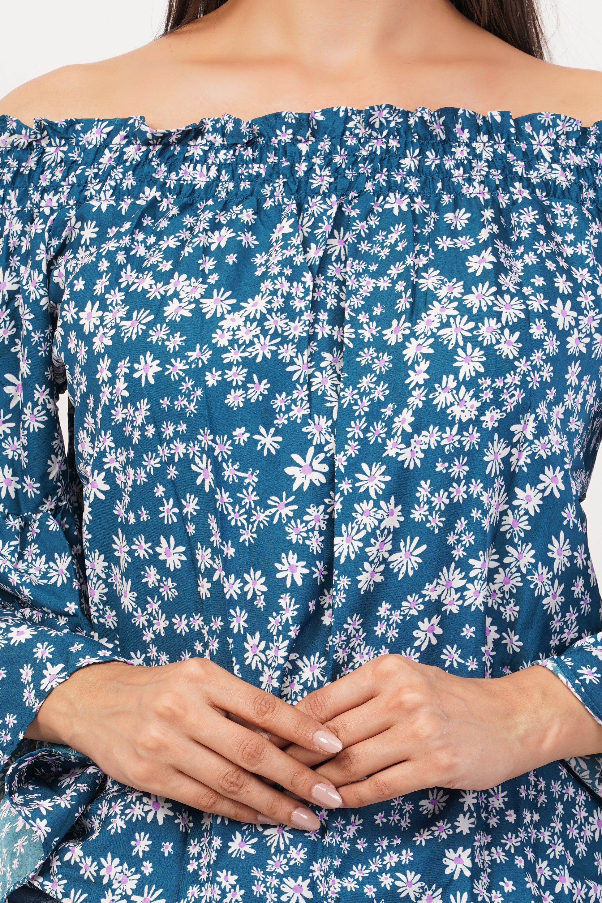 Strawberry Xpress Women's Floral Print Crepe Off-Shoulder Top