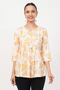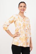 Strawberry Xpress Women's White & Yellow Floral Print Crepe Tunic Top
